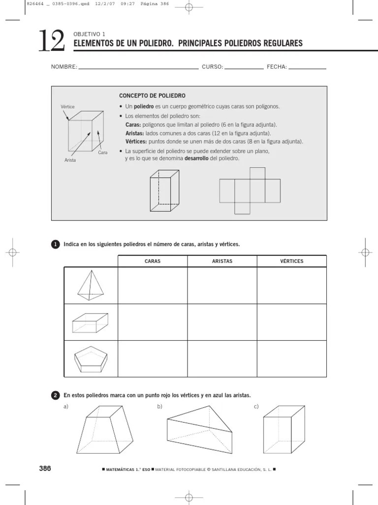 Numero Caras Vertices Aristas Cuerpos Geometricos. Un poliedro es un cuerpo geométrico de tres dimensiones cuyas caras son polígonos. Recuerda que los cuerpos geométricos están formados por figuras geométricas. El número de caras laterales, aristas y vértices depende de la forma que tengan sus bases.
