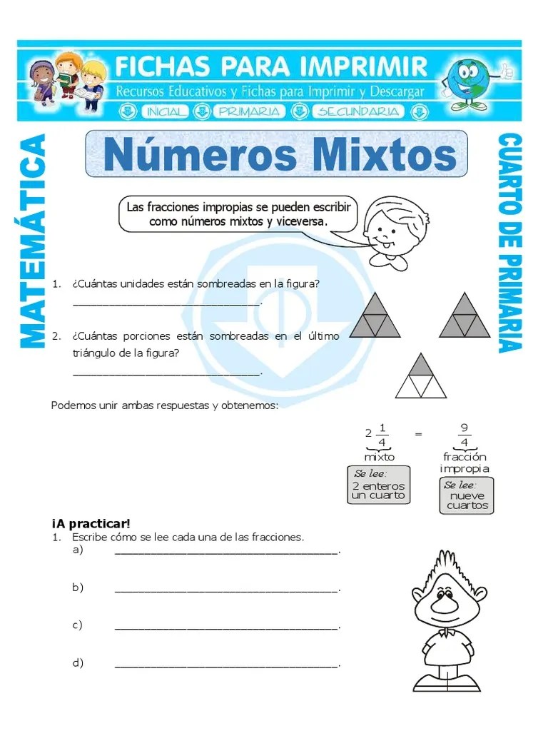 En este video se explica como convertir fracciones impropias en números mixtos. Una fracción impropia es una fracción en la cual el numerador (número de arriba) es mayor que o igual al denominador (número de abajo). Una fracción impropia tiene su. El denominador se lee con los números partitivos. Leer fracciones es muy sencillo. Hola, aqui te dejo este video en el que explico que son las fracciones impropias de una manera muy facil, ideal para principiantes. En las fracciones propias, el numerador es menor que el denominador.